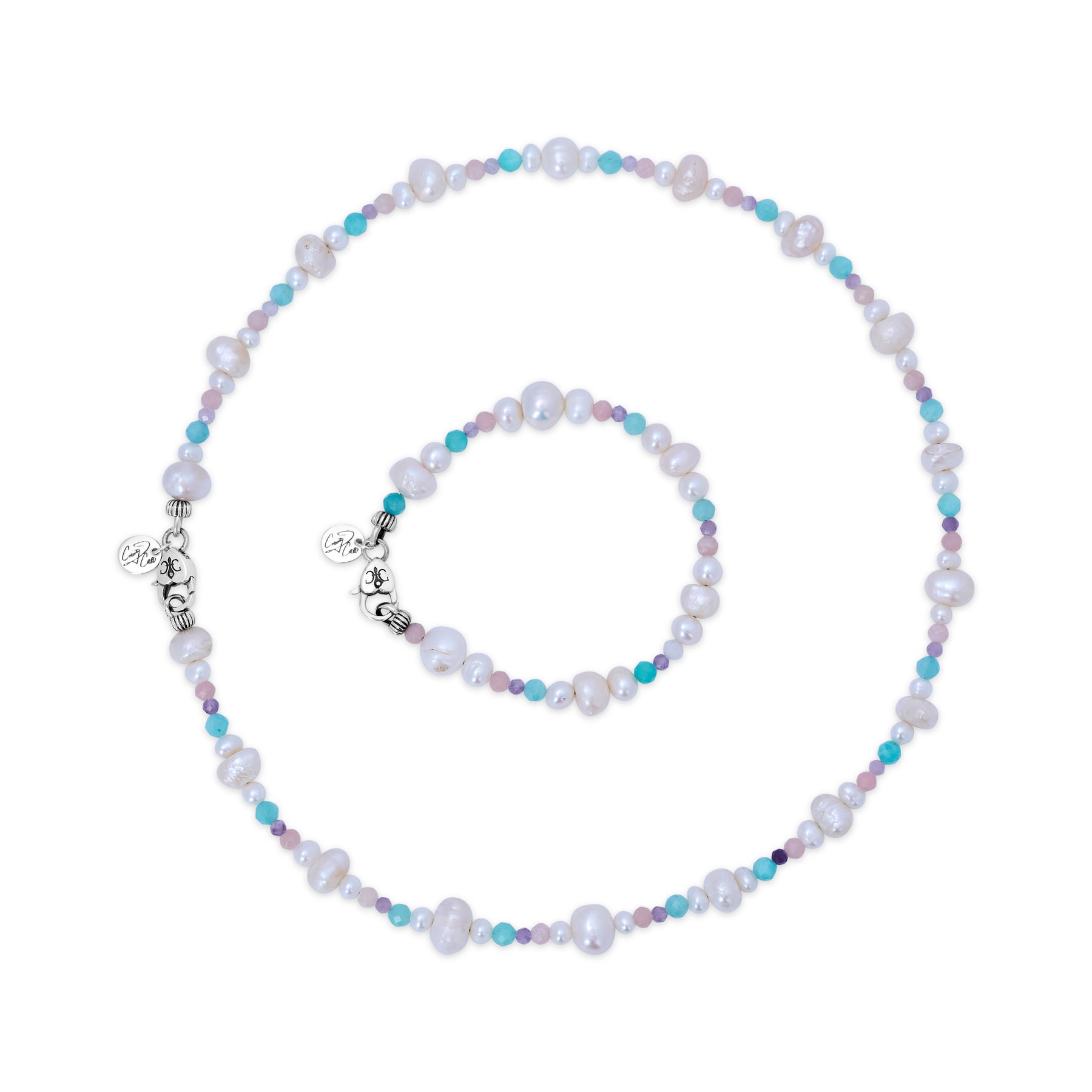 • natural variation of freshwater pearls and faceted gemstones