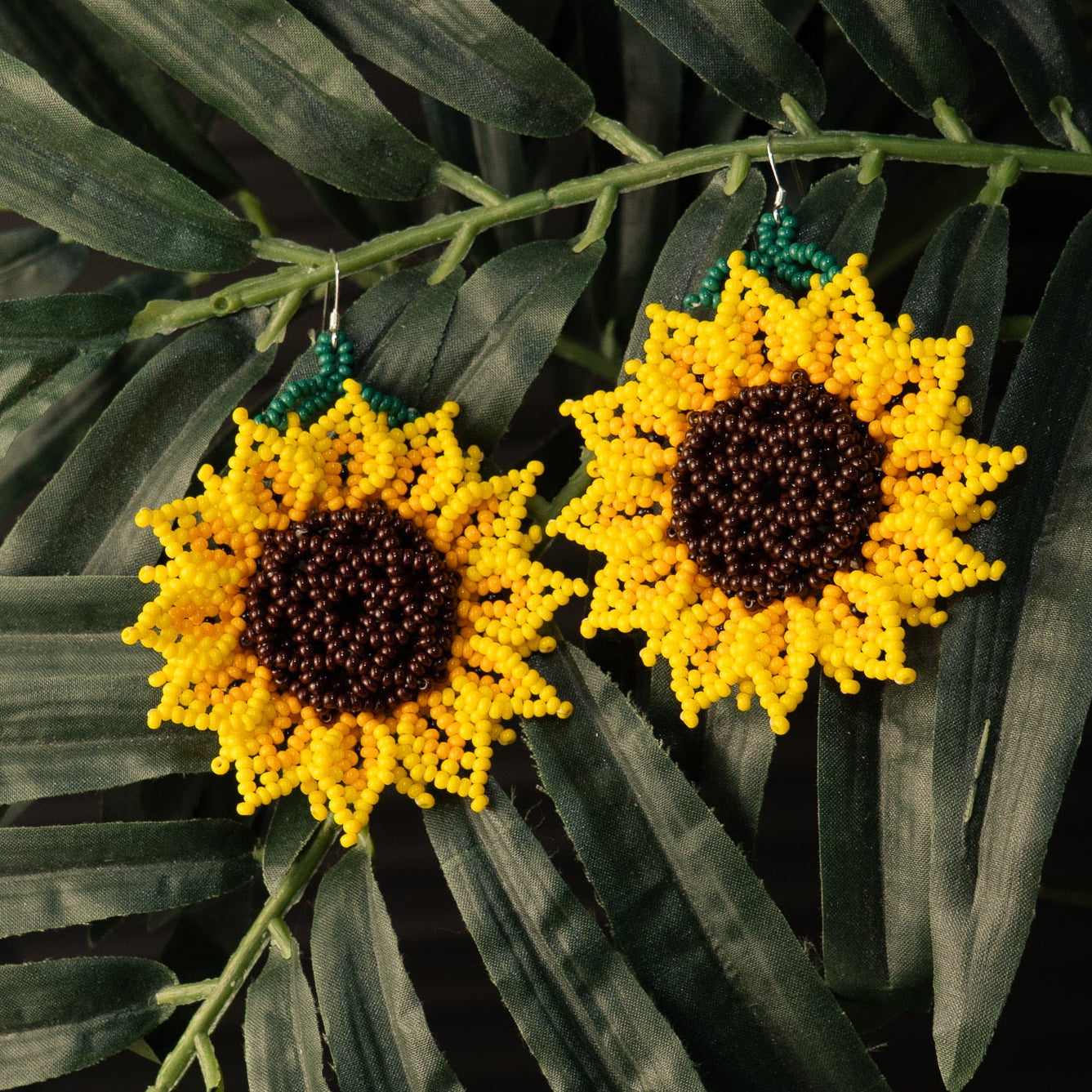These sunflower earrings are pure happiness. Handwoven bead by bead, their vibrant yellow petals and rich brown centers capture that unmistakable late-summer glow - bold, warm, and impossible to ignore.