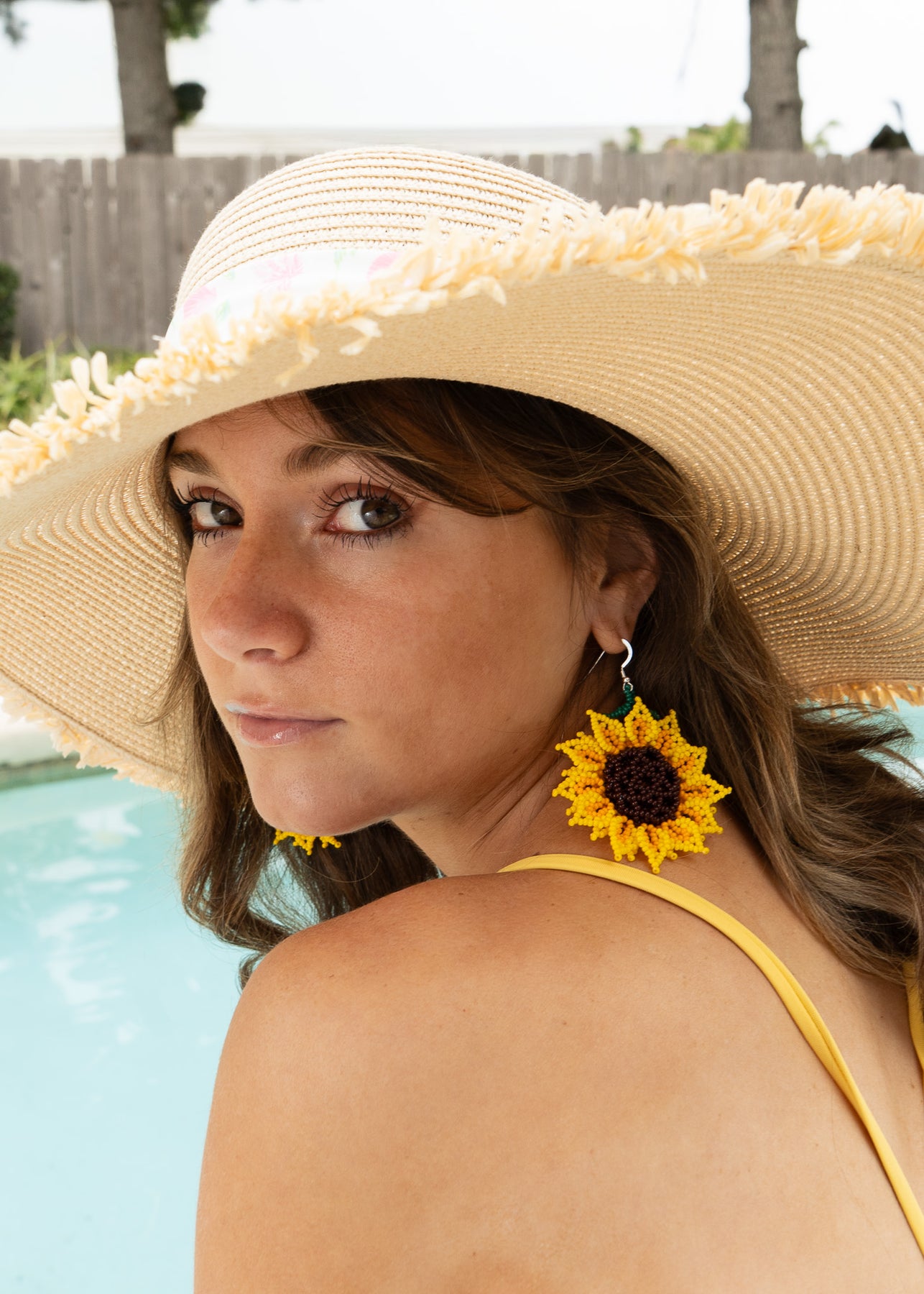 I love how they make a statement while still feeling playful and artful. They frame the face beautifully and bring instant brightness to even the simplest outfit. There’s something joyful and nostalgic about sunflowers - they turn toward the light - and wearing these feels like carrying a little of that energy with you wherever you go.