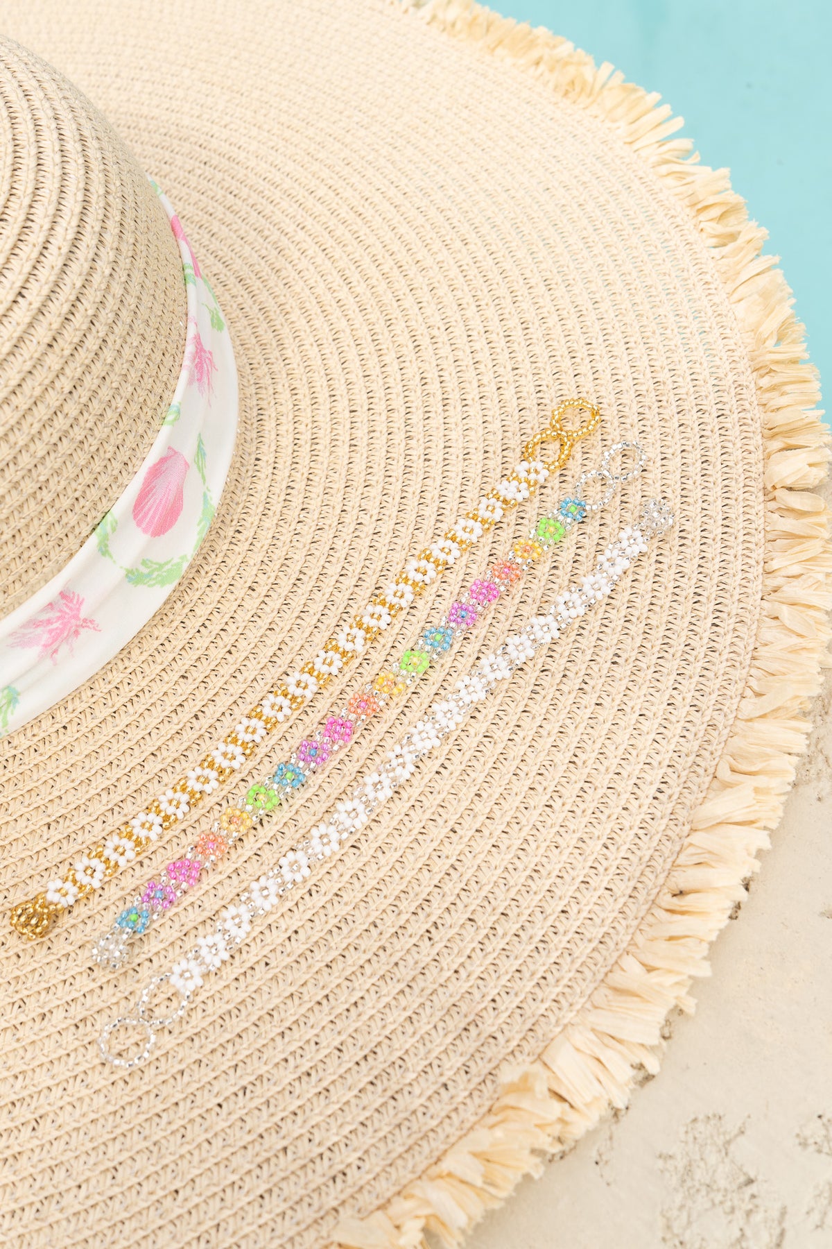 This bracelet is pure joy in wearable form. Handwoven by talented artisans in Guatemala, each strand features tiny blooming flowers in vibrant color combinations that feel playful, nostalgic, and full of life. No two are exactly alike, which makes choosing your favorite part of the fun.