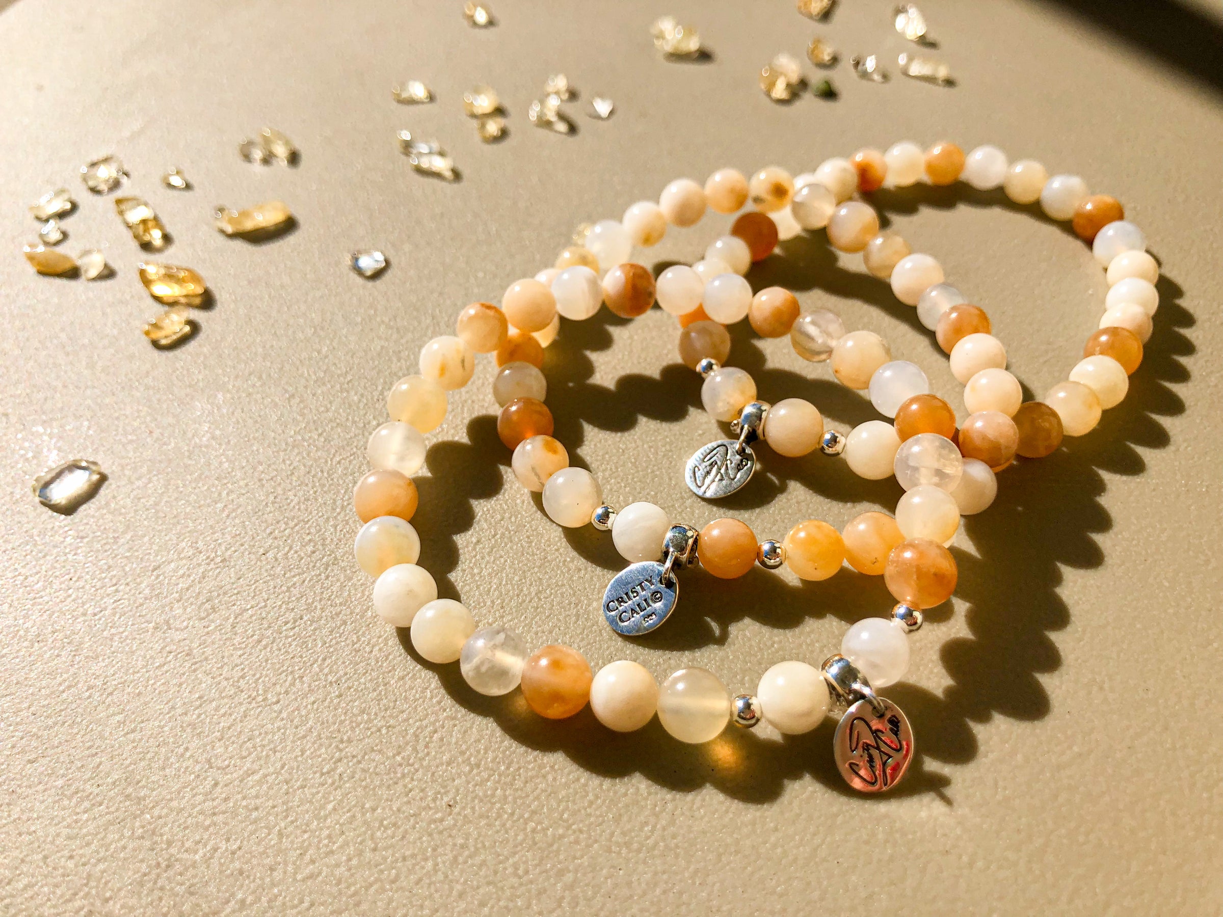 Signature Designs are wearable works of art, crafted with love & intention by Cristy Cali and her trusted team. Like all works of art, each one is "signed" with Cristy's Signature sterling silver or gold vermeil tag to symbolize the powerful personal intention each bracelet radiates.